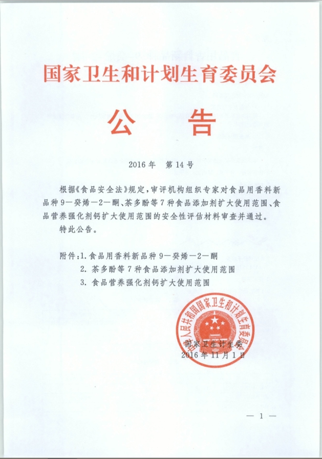 国家卫生和计划生育委员会公告(2016年 第14号)
